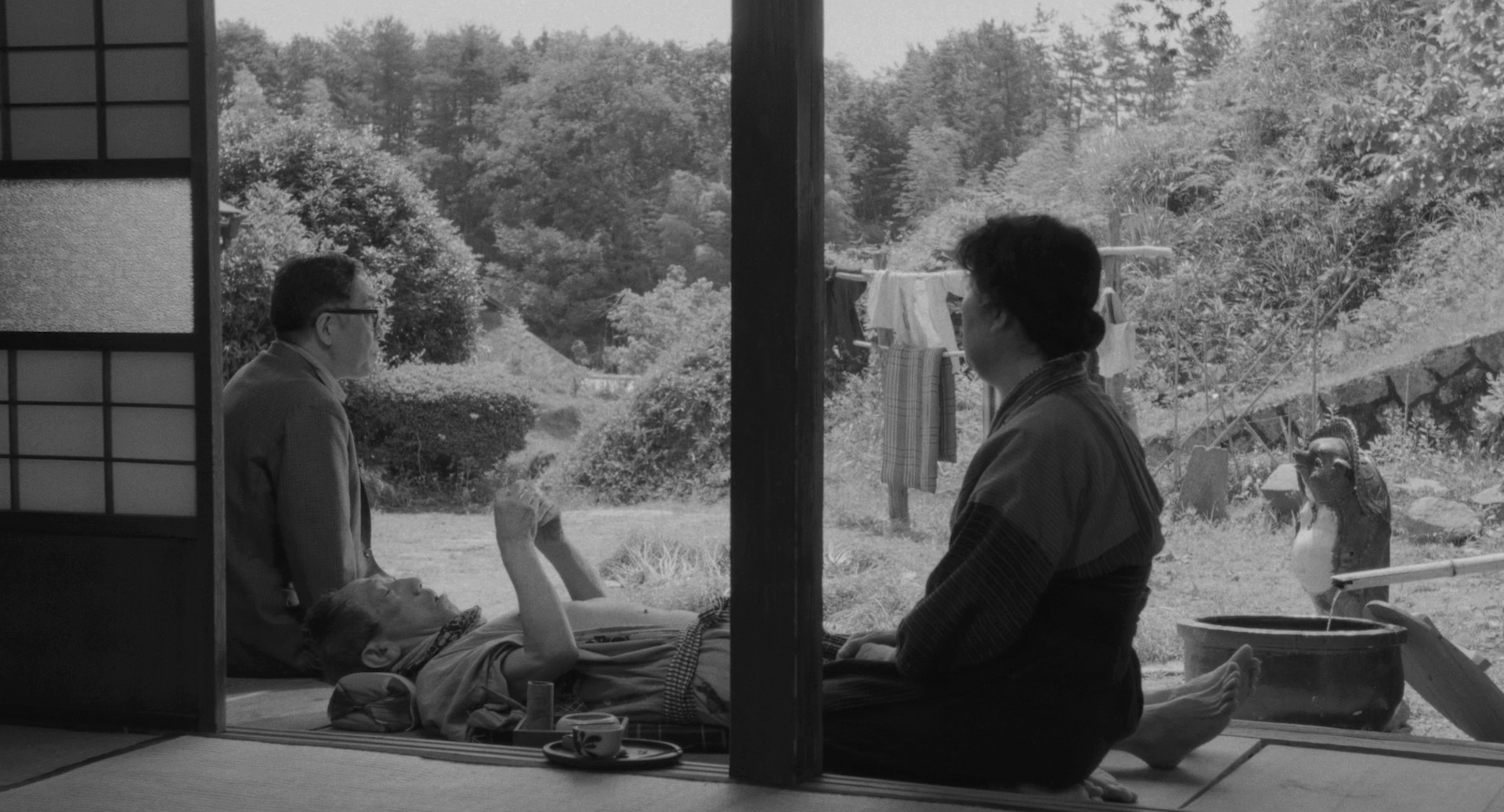 И действительно, этот фильм можно смотреть не как традиционное кино, а всматриваться в каждый кадр, наполненный достоинством, минимализмом и красотой - так, как ты погружаешься в мир фотографии. Невероятный оператор Такаши Кавамата работал над ранними фильмами Нагисы Осимы, снимал некоторые фильмы Ясудзиро Одзу и был ассистентом на его "Токийской повести", главном фильме "японского дзена", влияние которых на это кино очень ощутимое. Кстати, на "Токийской повести" также работал ассистентом, уже режиссёра, и сам Имамура.