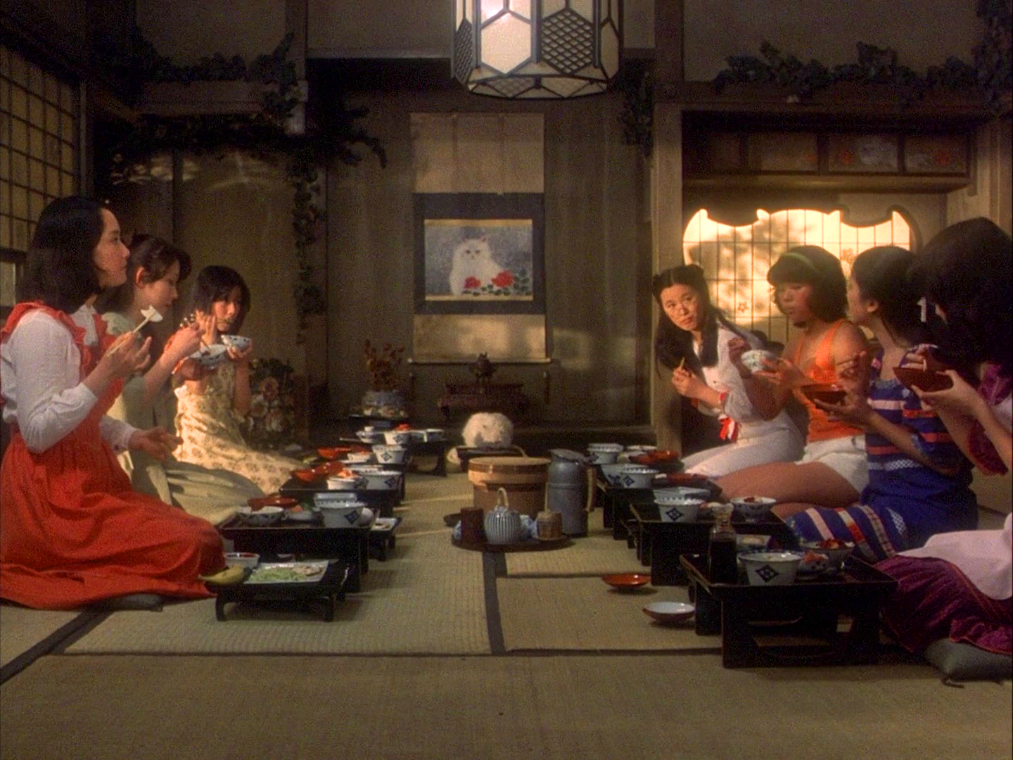 На самом деле эта психоделическая сказка - один из забытых культовых японских фильмов 70-х. В нем сконцентрировались самые что ни на есть архетипистые архетипы японского хоррора: невинные девочки-отличницы в коротких юбчонках, отданные на поругание злым призракам. Набор персонажей - злые духи, демонический кот, а также кровожадный рояль - не дают повода смотреть все это серьезными испуганными глазами. Слишком абсурдно, чтобы быть по-настоящему страшным, но и слишком бескомпромиссно, чтобы бы оставаться чистой комедией. Подкупает смешение жанров, режиссерская безбашенность, безумные краски и трэшевые аналоговые спецэффекты докомпьютерной эры 70-х. Стиль, в котором уже давно не снимают, но который навсегда останется в наших сердцах )))